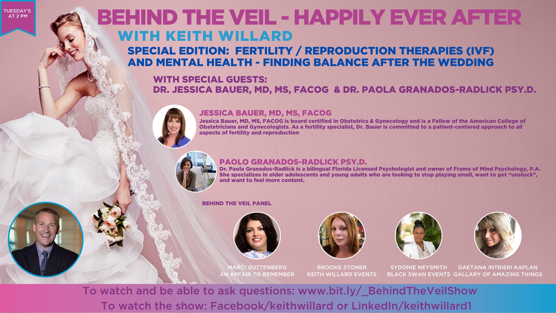 "Behind The Veil - Happily Ever After: What happens after your married" welcomed Dr. Jessica Bauer - IVF and Fertility expert to help dispense the myths and answers questions about reproductive therapies. Also joining us is psychologist Dr. Paola Granados-Radlick to talk about depression after a wedding.
